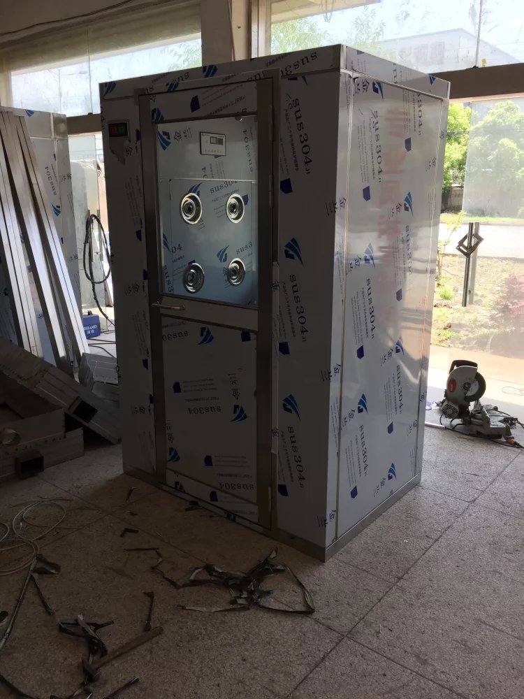 1400*1200*2100雙人雙吹不銹鋼風淋室是左側+右側吹淋,是人員進出無塵室所必需的通道,并同時起到氣閘室密閉無塵室的緩沖作用,是進行人員除塵和防止室外空氣污染無塵室的有效設備,也是目前凈化車間人員通的必需設備。