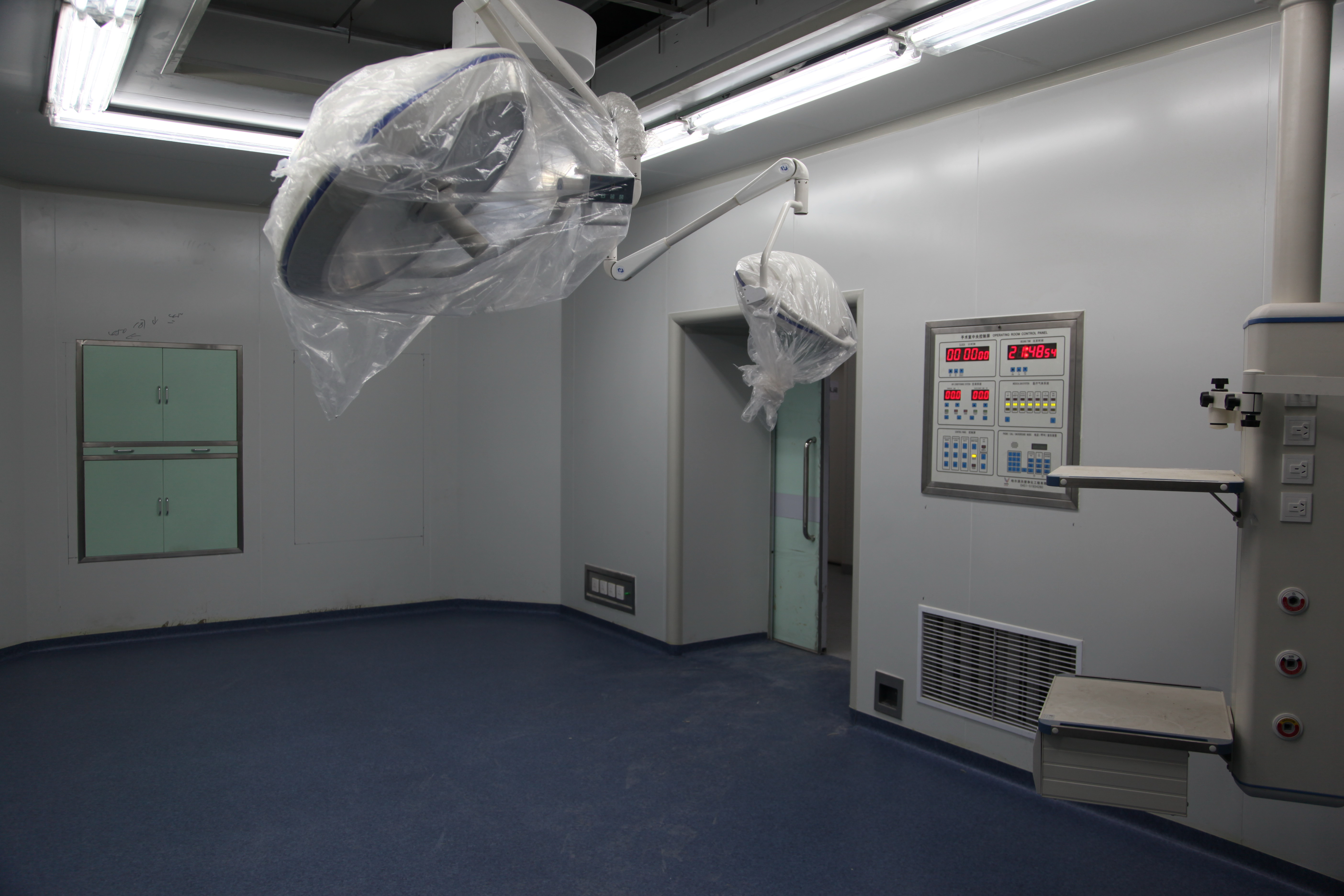 ⑷、每天應在手術前、后,用消毒液各擦拭1次無影燈、器械車、麻醉桌、手術床、壁柜等各種器材表面及地面;對工作人員穿過的隔離鞋進行清潔消毒。每周將上述器材及地面徹底擦拭、清潔保養1次。